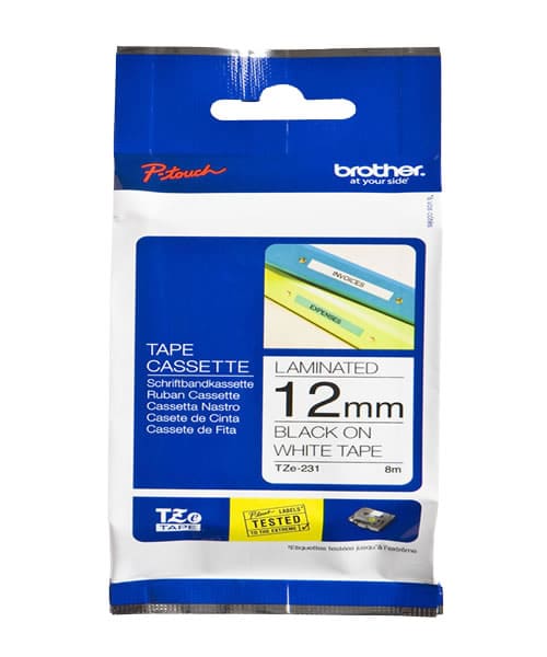 Brother P-Touch TZe-231 etiketi, Brother etiketleme makineleriyle çalışmak üzere tasarlanmış yüksek kaliteli, dayanıklı bir etiket şerididir. Hem ev hem de ofis ayarlarında dosyaları, klasörleri, kabloları ve diğer birçok öğeyi etiketlemek için kullanılabilen çok yönlü bir etiketşerittir. Brother TZe-231, 12 mm genişliğinde ve 8 metre uzunluğunda beyaz üstüne siyah bir etiket şerididir.